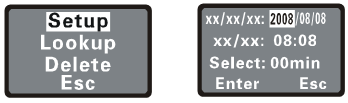 在测试状态下,按MEM键进入功能目录,按向上、向下箭头键移动光标到“设定时间"项,再按MEM键即进入日期时间设定模式,在日期时间模式下按向上、向下箭头键改变数值大小,按向左、向右箭头移动光标,按MEM键“确定"或“取消"设定。