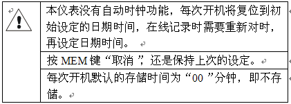 设定时间 | 1~60分钟内设定记录间隔时间,0分钟为不自动存储 |