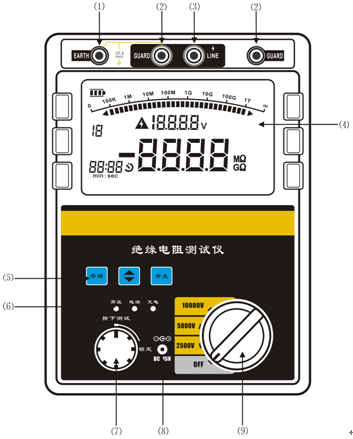 图1:SMR-10KV绝缘电阻测试仪面板结构说明